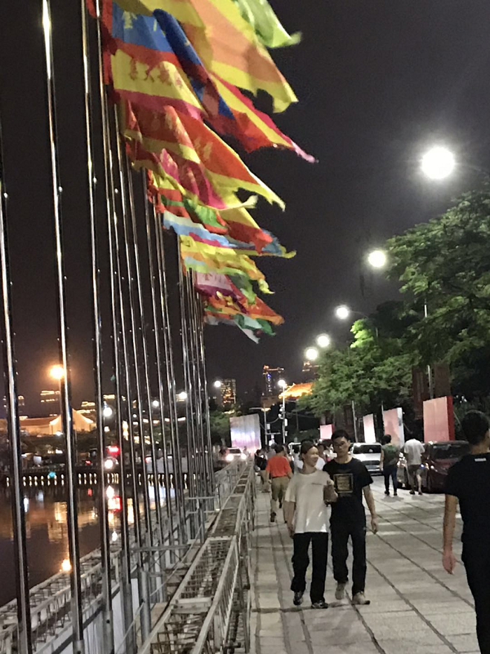 明天集美龙舟比赛,晚上转到龙舟池,靠中亭的岸边一溜高高的旗杆,杆上旗帜风中猎猎。见有“金门大学”,有些惊讶:金门还有金门大学?于是微信图片跑过金马的朋友:金门尽然还有大学?