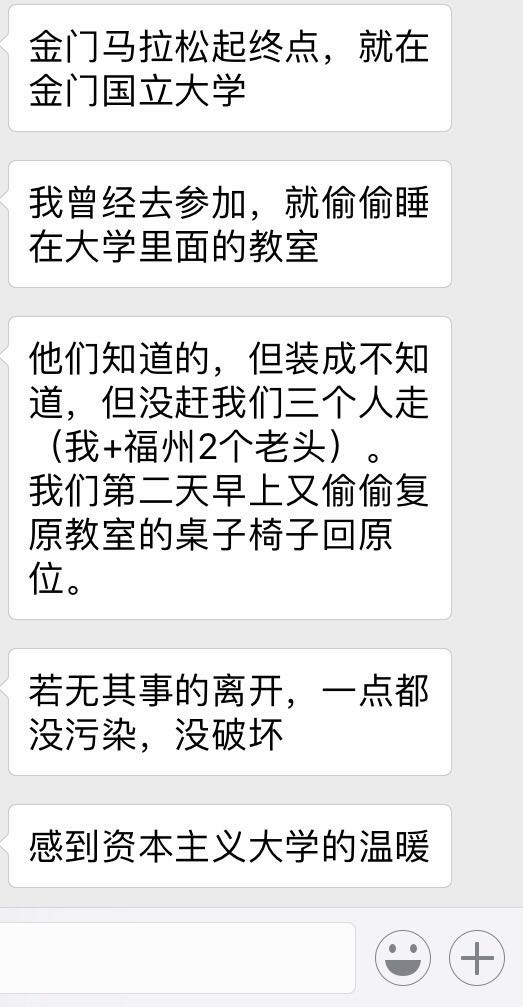 想象着,被借宿的:我知你的难处(也许没有订到酒店),我们不会赶你的,这一晚,你们好好睡吧,明天的马拉松要跑好远。借宿的:已经打忧人家了,我们要轻声,不要弄出响动,再影响人家,走时,所有的就像我们没有来过一样。