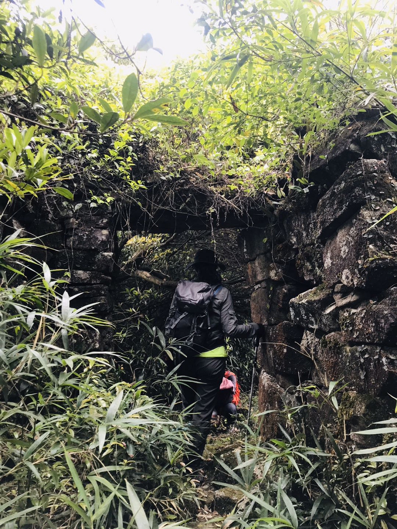 土匪寨位于灌口,在山顶的凹陷处,位置隐蔽。没有屋顶的土匪寨,不知始于何年,盛于何时,残存的石墙石门框,青苔斑驳,藤蔓攀援,屋内屋外小竹子灌木丛生,高大树木遮蔽天日。