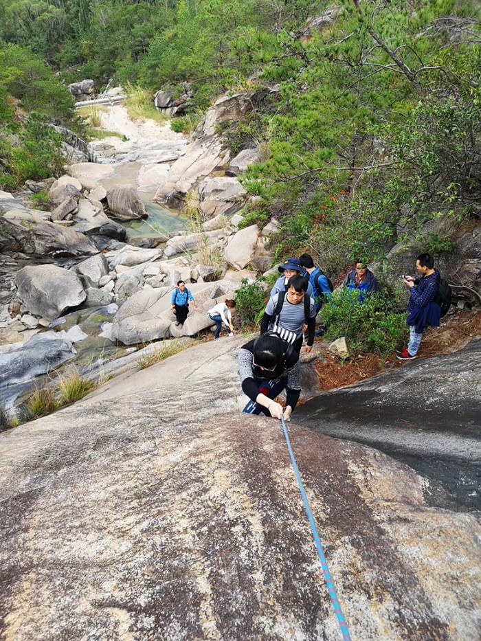 【线路简介】 北山峡谷位于同安北辰山景区左侧,紧邻白沙仑,一路沿溪而上,峡谷一路风景优美、山石奇崎、断崖峭避,部分路段需借助登山绳索方可通过,非常具有挑战性。本线路全长约5公里,且为户外三星线路,喜欢挑战大自然的就来吧!