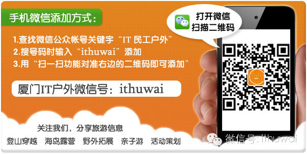 活动讨论QQ群:34406348(验证码:一线天) IT户外微信:ithuwai
