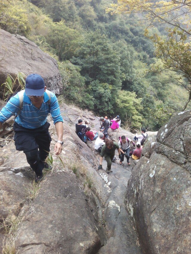 13:00 开始继续爬山穿越百丈崖。