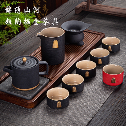 锦绣山河·粗陶描金茶具